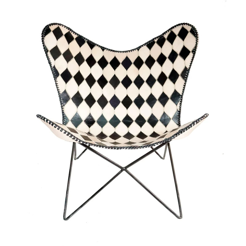 Black Diamond Butterfly Chair – Canvas Leather Mixture Seat With Iron Stand