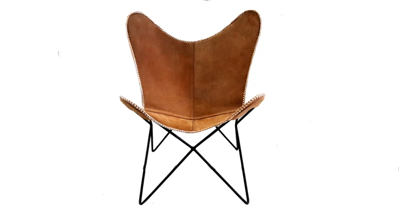 Joseph Butterfly Chair Canvas Leather Mixture Seat With Iron Stand