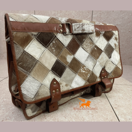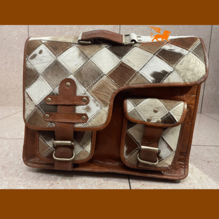 Stylish Handmade Brown Leather Massager Bag Cow Hairon Several Pockets – 12 x 16 inch