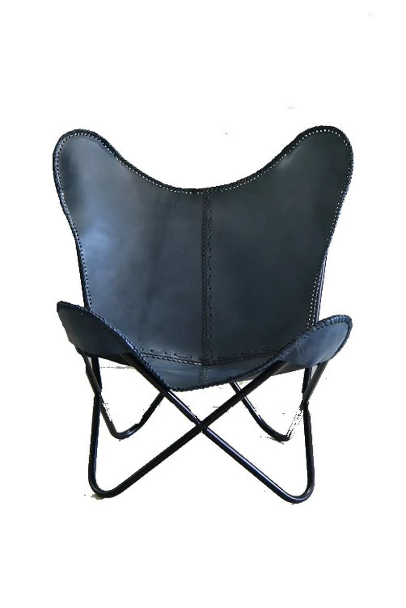 100% Indian Handmade Leather Butterfly Chair With Iron Frame Indoor Outdoor Use
