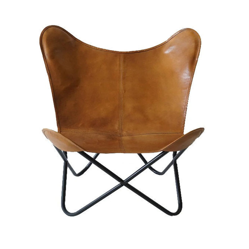 Real & Clear Butterfly Chair – Canvas Leather Mixture Seat With Iron Stand