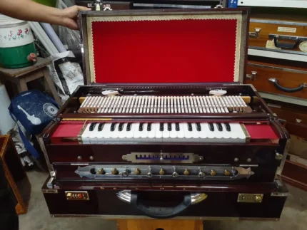 2 Line Indian Harmonium Model High Class Walnut Finish (Bass -Male)